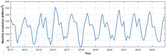 Figure 1 illustrates the high solar energy potential in the region, showcasing monthly solar irradiation data over an 11-year period (2013–2024).