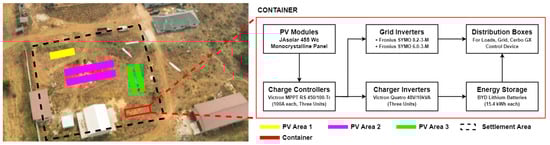 - Economic sustainability of microgrid systems: High deployment costs are a barrier in low-resource settings. Nasir et al. (2020) demonstrated the cost-effectiveness of DC microgrid architectures for rural electrification []. Falk et al. (2021) highlighted community engagement and public–private partnerships as successful models to reduce financial barriers [,].