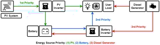 - Load profiling and energy demand estimation: Accurate load profiling is vital for reliable microgrid operations. Sanfilippo et al. (2023) demonstrated how inaccuracies in demand estimation affected system efficiency in the Leveraging Energy Optimization for Adaptable Renewable Deployment (LEOPARD) project []. Falk et al. (2021) emphasized dynamic load modeling’s importance, highlighting socio-economic challenges in implementing microgrids in rural Tanzania [].