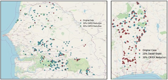 - Sanfilippo, S.; Cabrera, J.H.; Évora, J.; Kébé, C.M.F.; Kremers, E.; Péchiné, B.; Cardot, J.S.; Rachid, A.; Tossa, A.K.; Lekoto, J.; et al. Microgrid design optimization in Benin within the LEOPARD project: Evaluating the impact of inaccurate load profile estimation. In Proceedings of the 2023 3rd International Conference on Electrical, Computer, Communications and Mechatronics Engineering (ICECCME), Canary Islands, Spain, 19–21 July 2023; pp. 1–6. [Google Scholar]