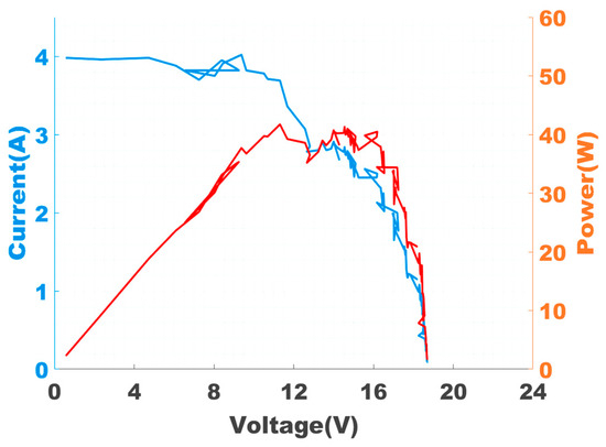 Figure 12 show typical plots of the current–voltage (I-V) and power–voltage (P-V) output characteristic curves of the prototype device for the clean solar photovoltaic Helios module under different weather conditions. The difference between the performance and the effect of varying weather conditions combined with the panel’s manufacturing quality can be seen in the curves. This is to be expected, as the electrical characteristics of a panel are highly dependent on the characteristics of the materials, the climate and the quality of the manufacturing process.