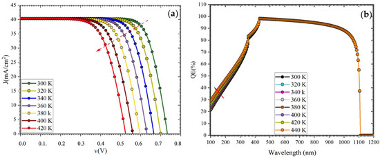 Influence of temperature of the back surface field layer on (a) J_V and (b) QE.