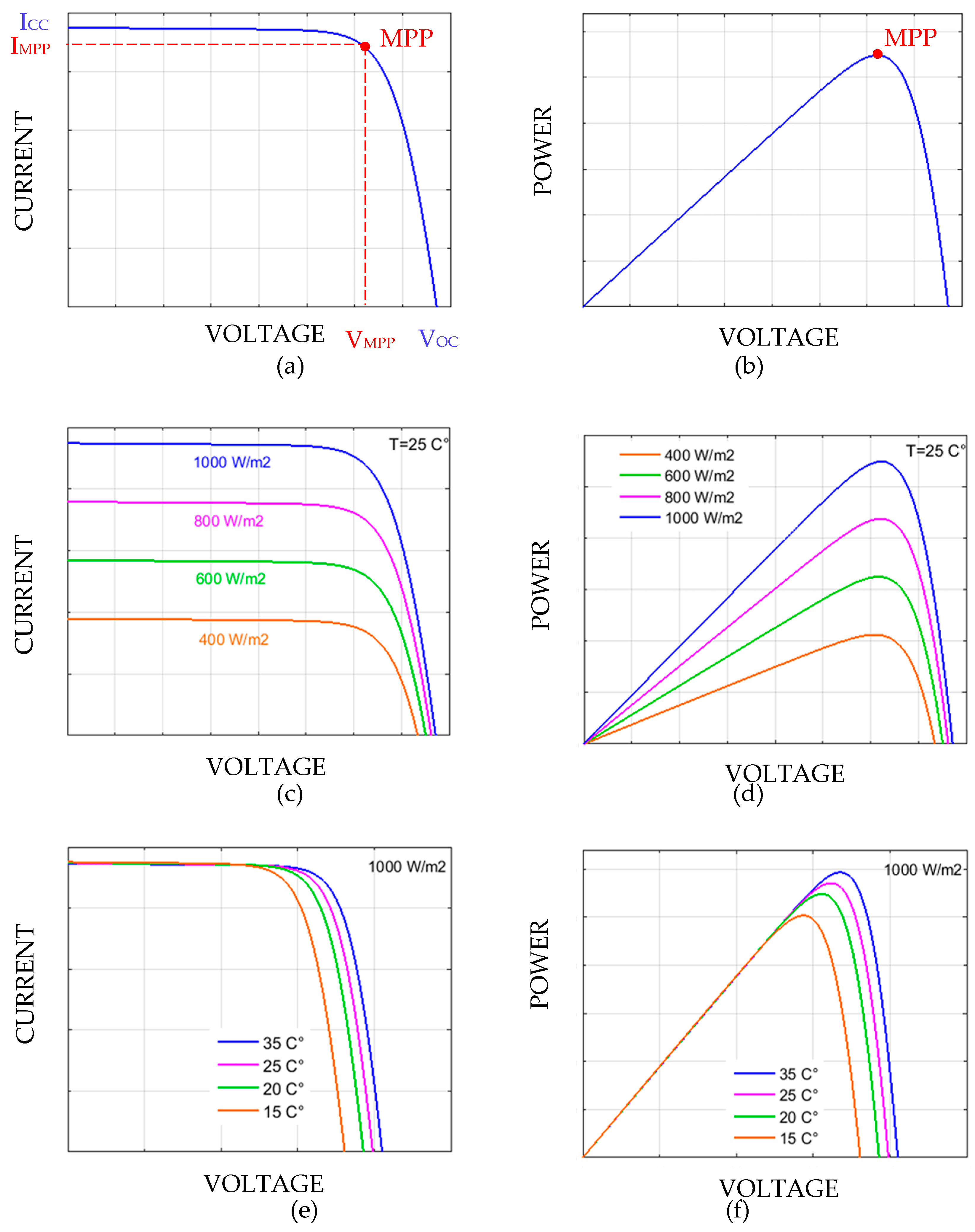 - Irradiance (G): Solar irradiance directly impacts the current output of PV modules. An increase in irradiance increases power generation, but also shifts the MPP [11].