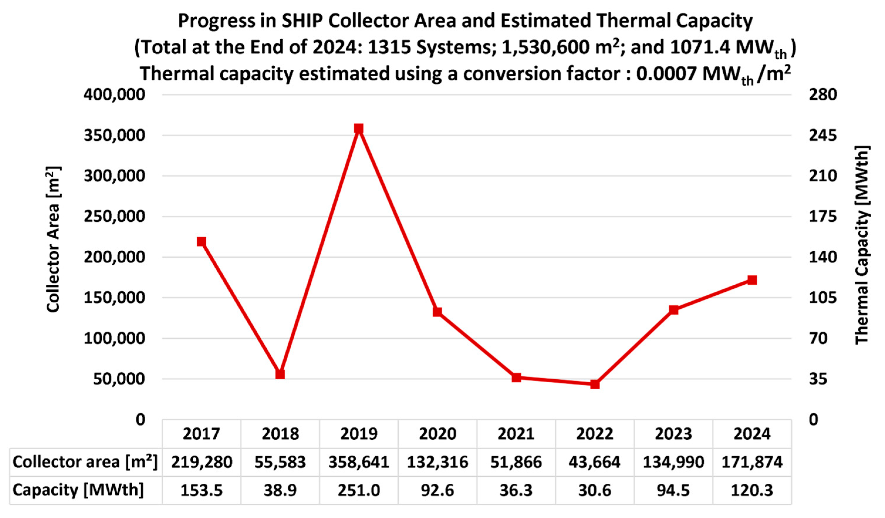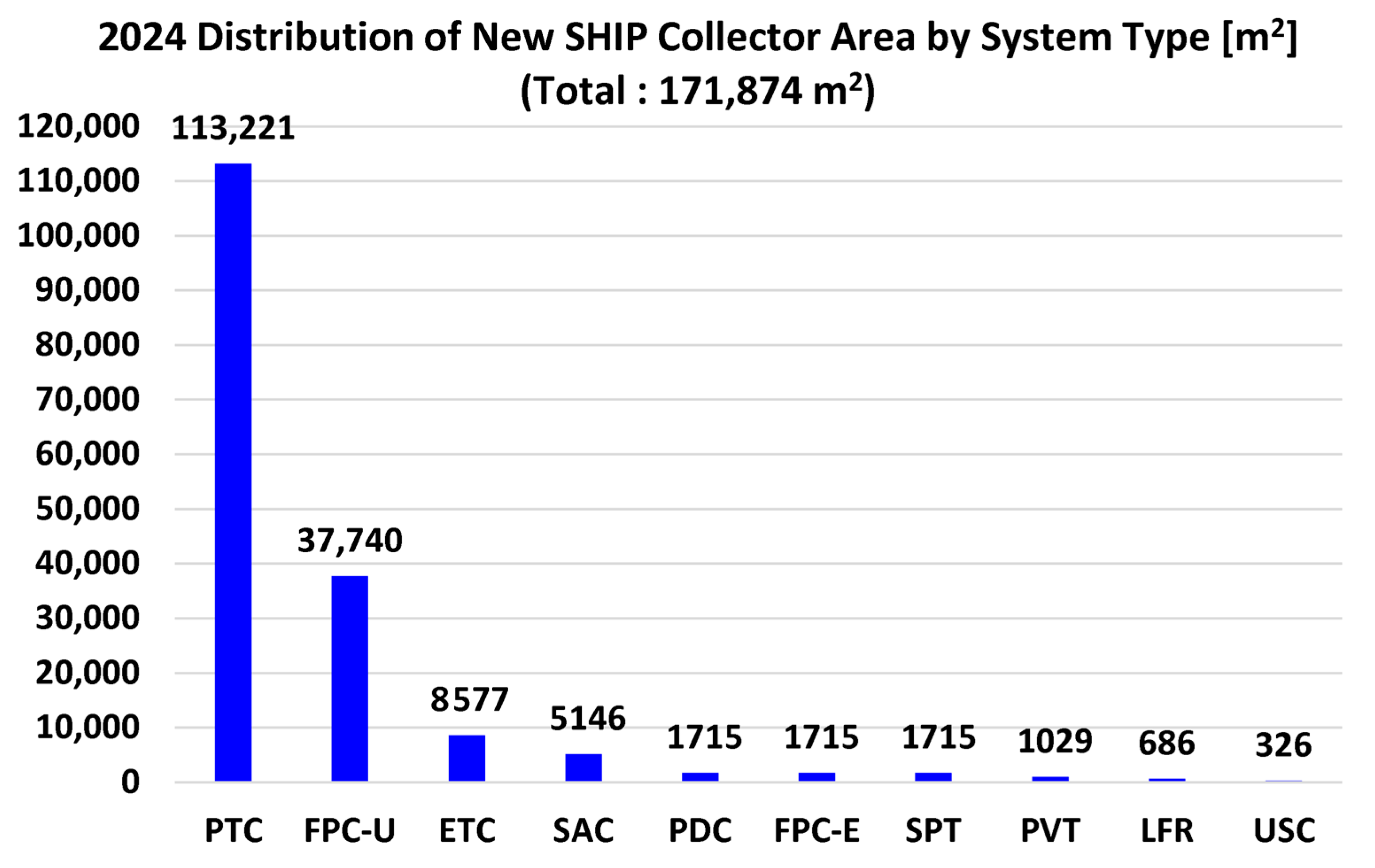 Category Number | SHIP Category | 2024 Added Systems | 2024 Added Collector Area [m2] | Average Collector Area per System for New Systems in 2024 [m2/project] |