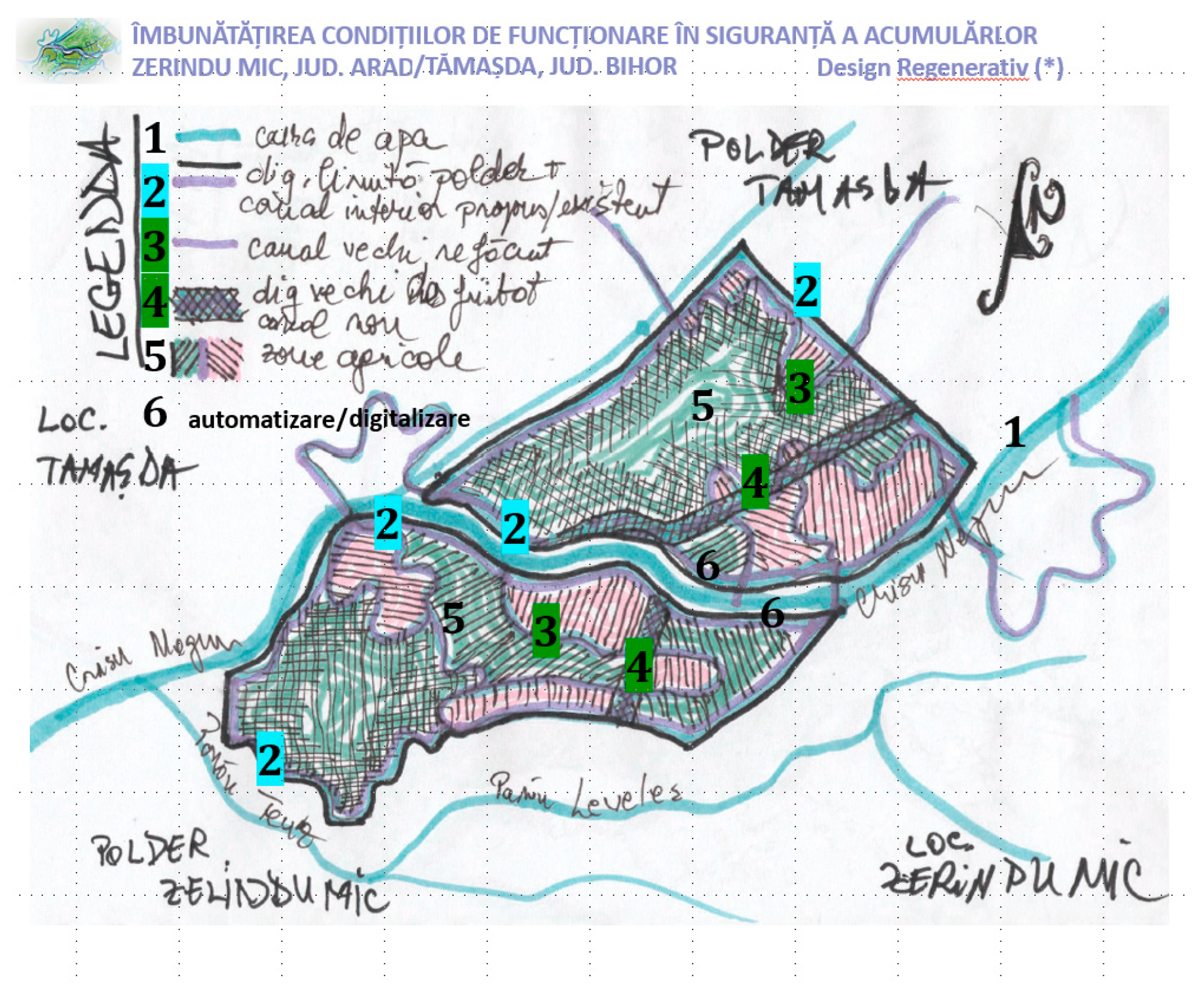 The case studies related to this research, the Renaturation of [Z-AR] Zerind Polder, Arad County, and the replicable case study of [T-BH] Tămaşda Polder, Bihor County, were conducted by the Aqua Prociv Proiect Company, Cluj-Napoca, Romania, and underscore the significant relevance of the team’s specific research on design [