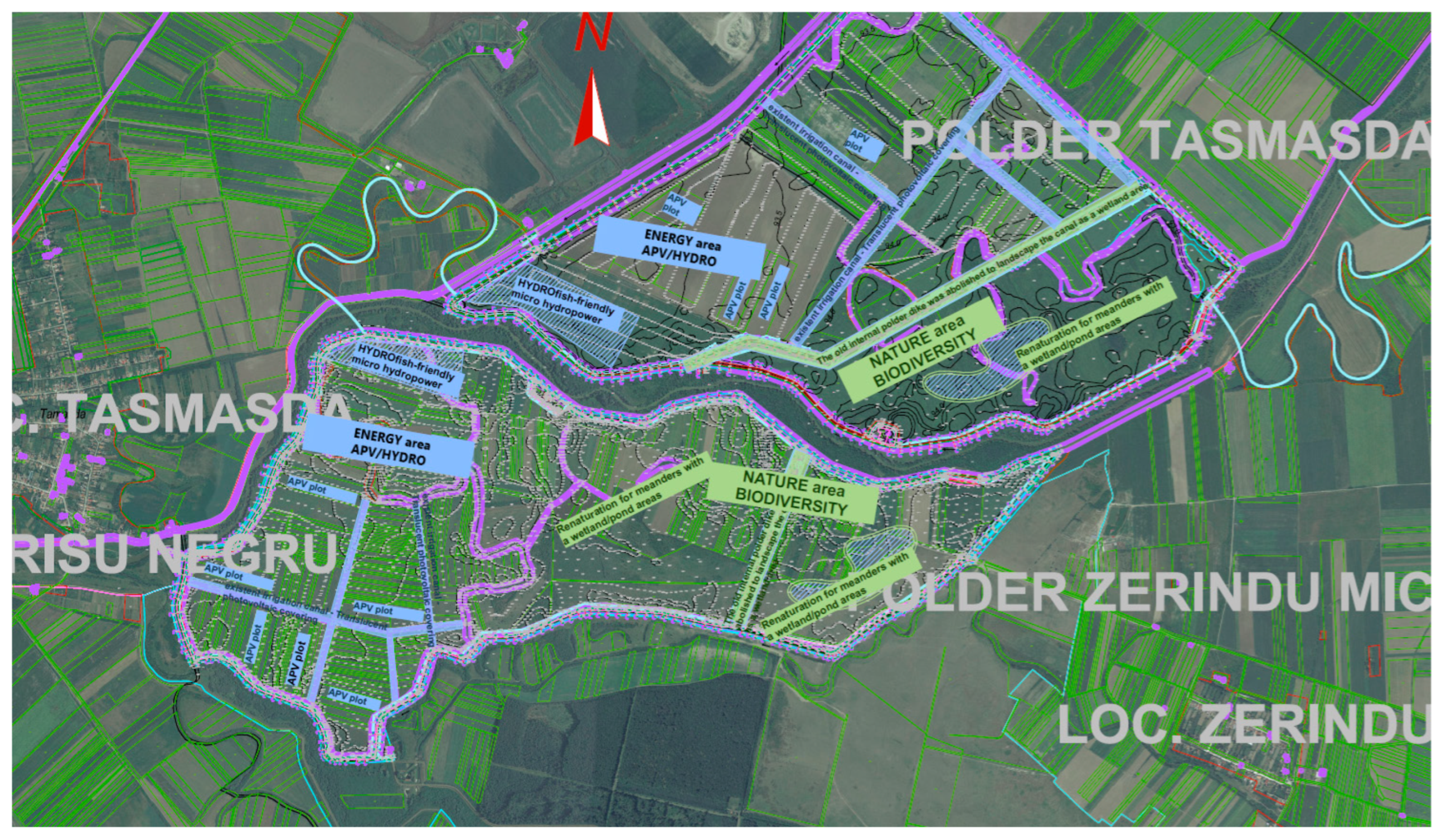 - Dițoiu, Nina Cristina, Concept Sketch, “Renaturation of Zerind Polder, Arad County” & ”Renaturation of Tămaşda Polder, Bihor County”, Coordinator Aqua Prociv Proiect Team Eng. Dan Săcui. Available online: https://www.aquaprociv.ro/default.html (accessed on 25 April 2025).
