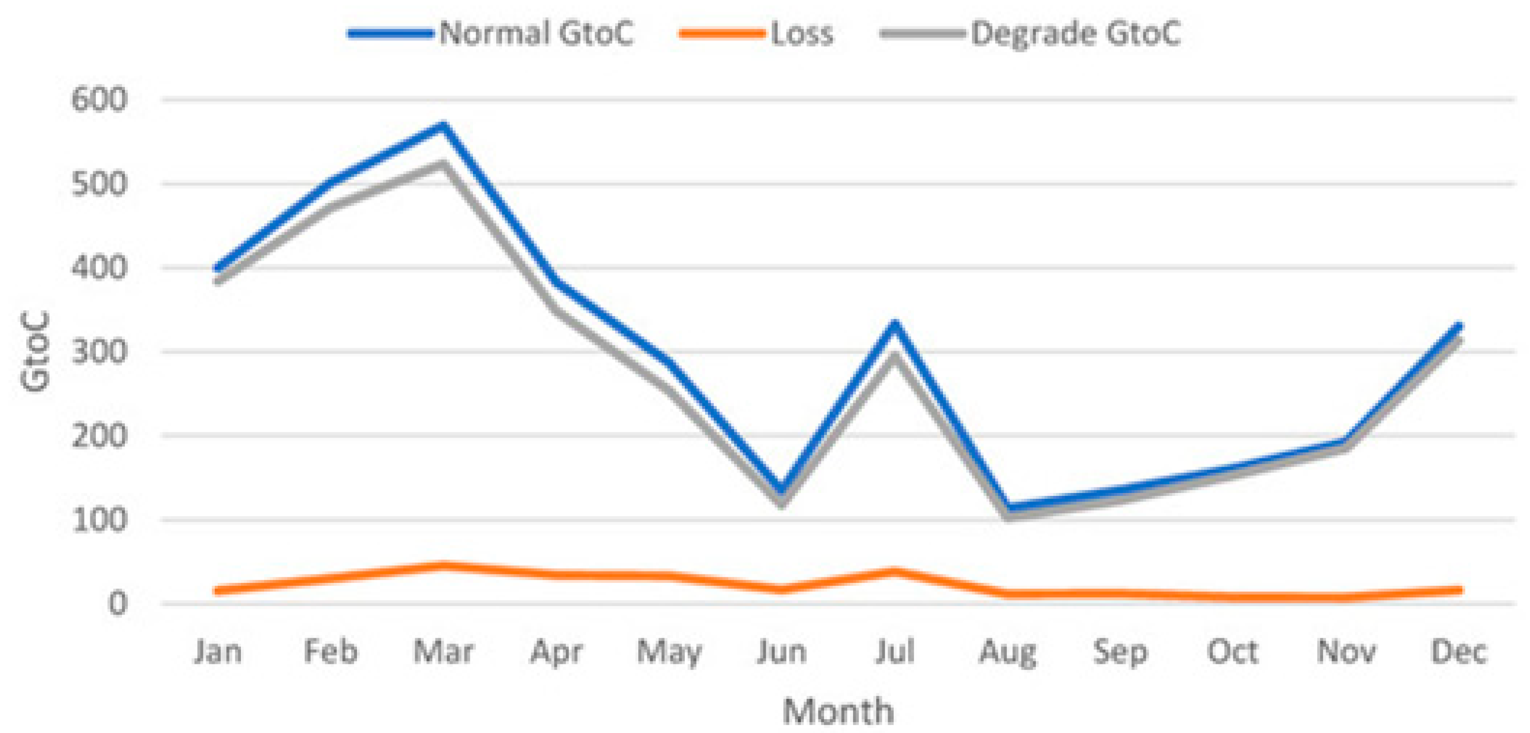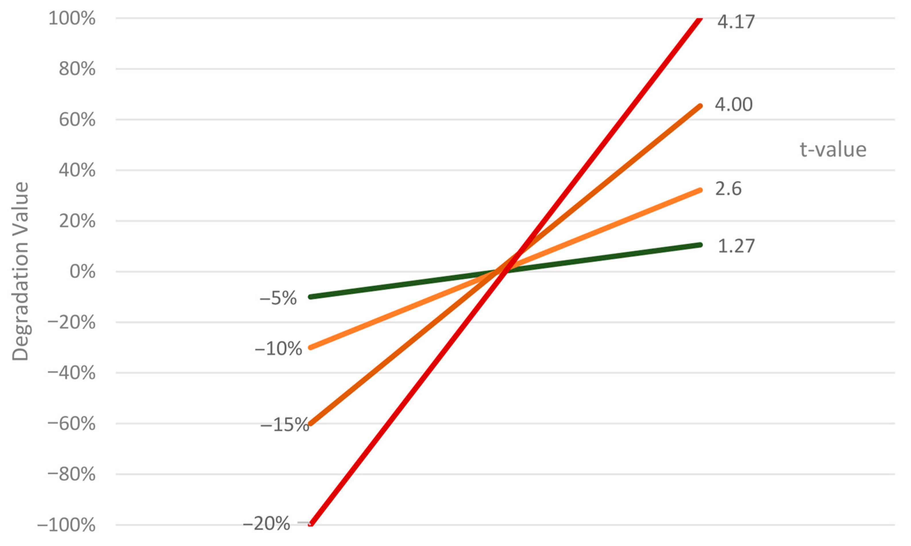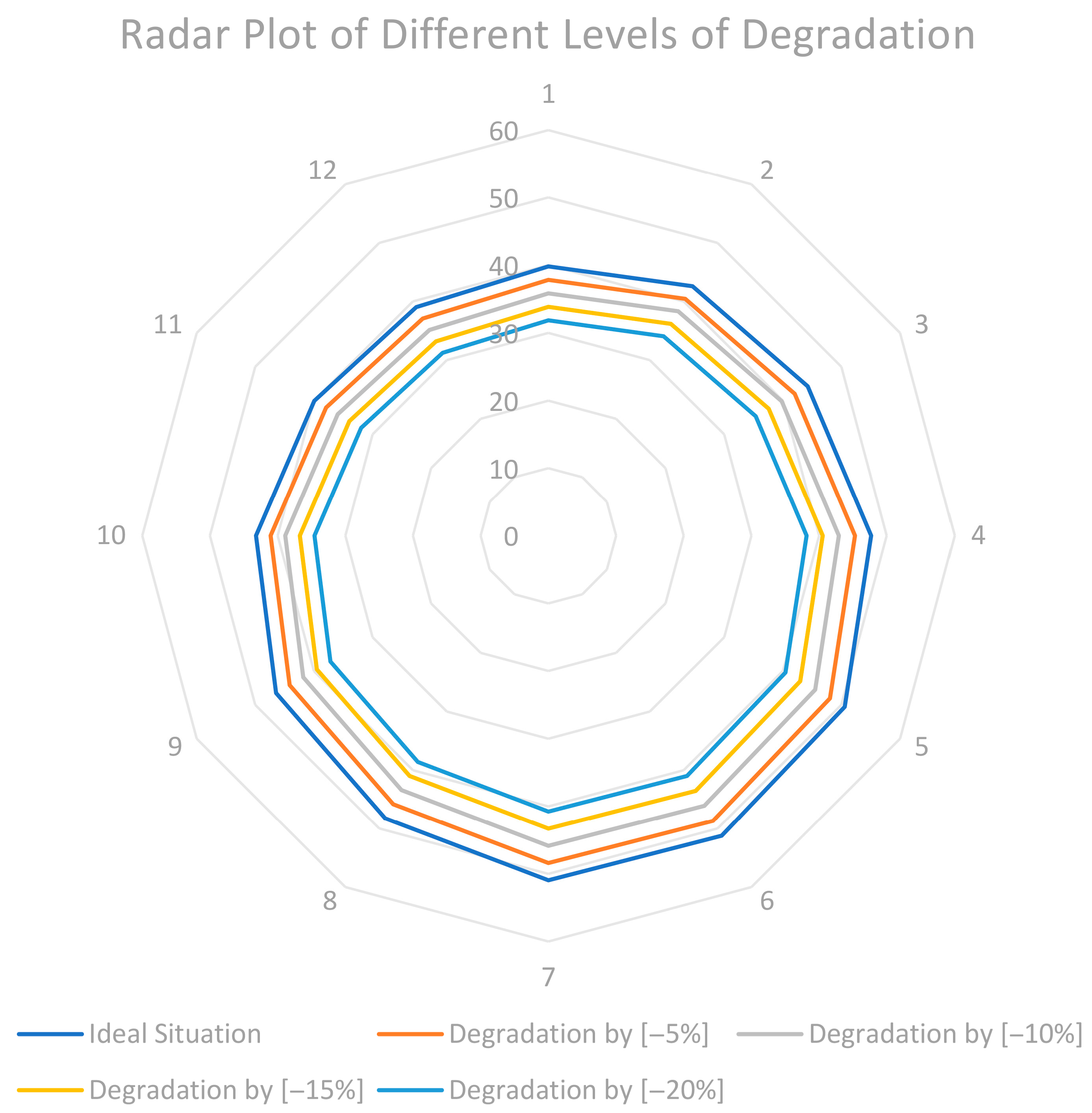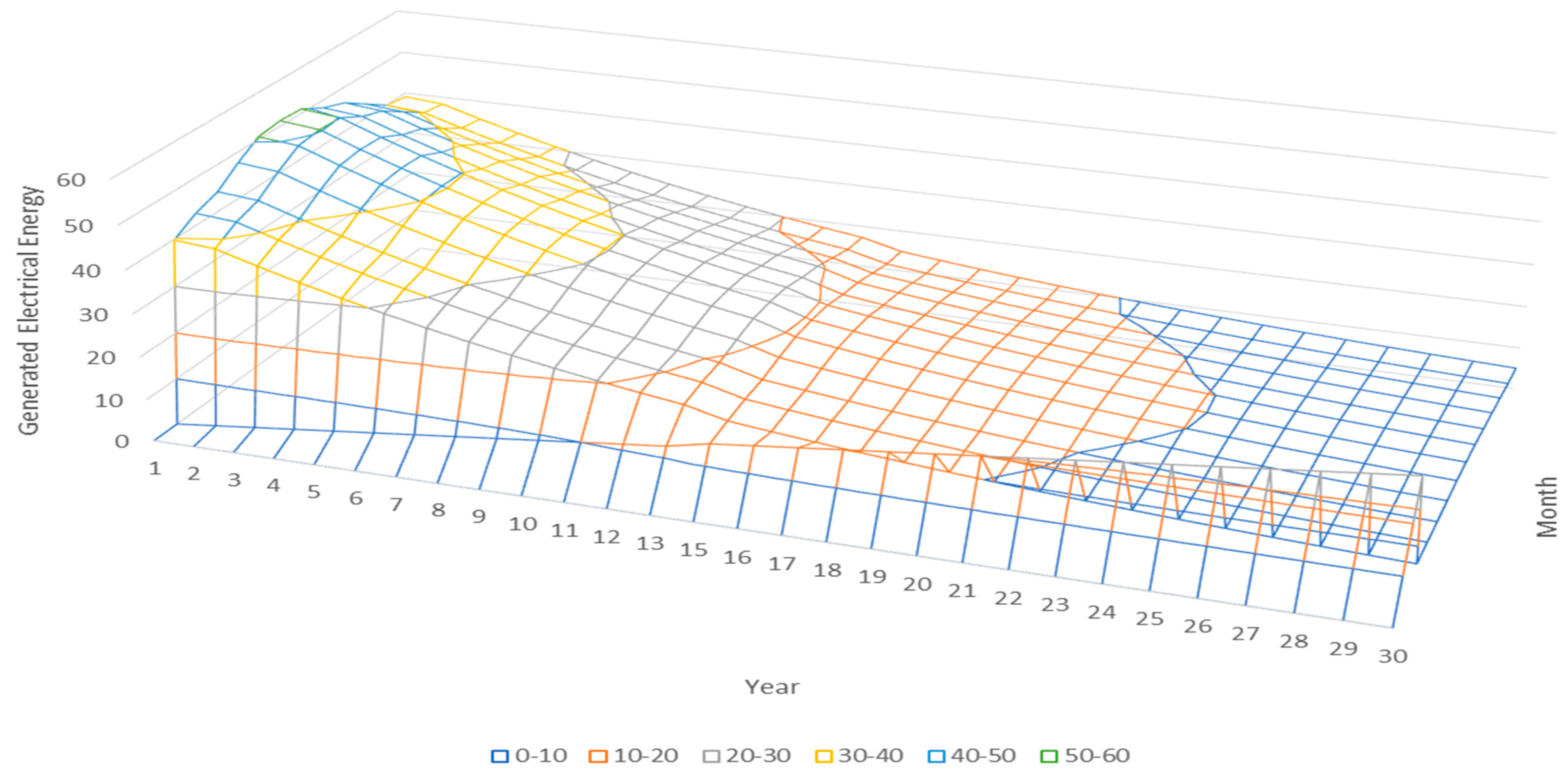 | Month | Ideal Situation | Degradation by [−5%] | Degradation by [−10%] | Degradation by [−15%] | Degradation by [−20%] |