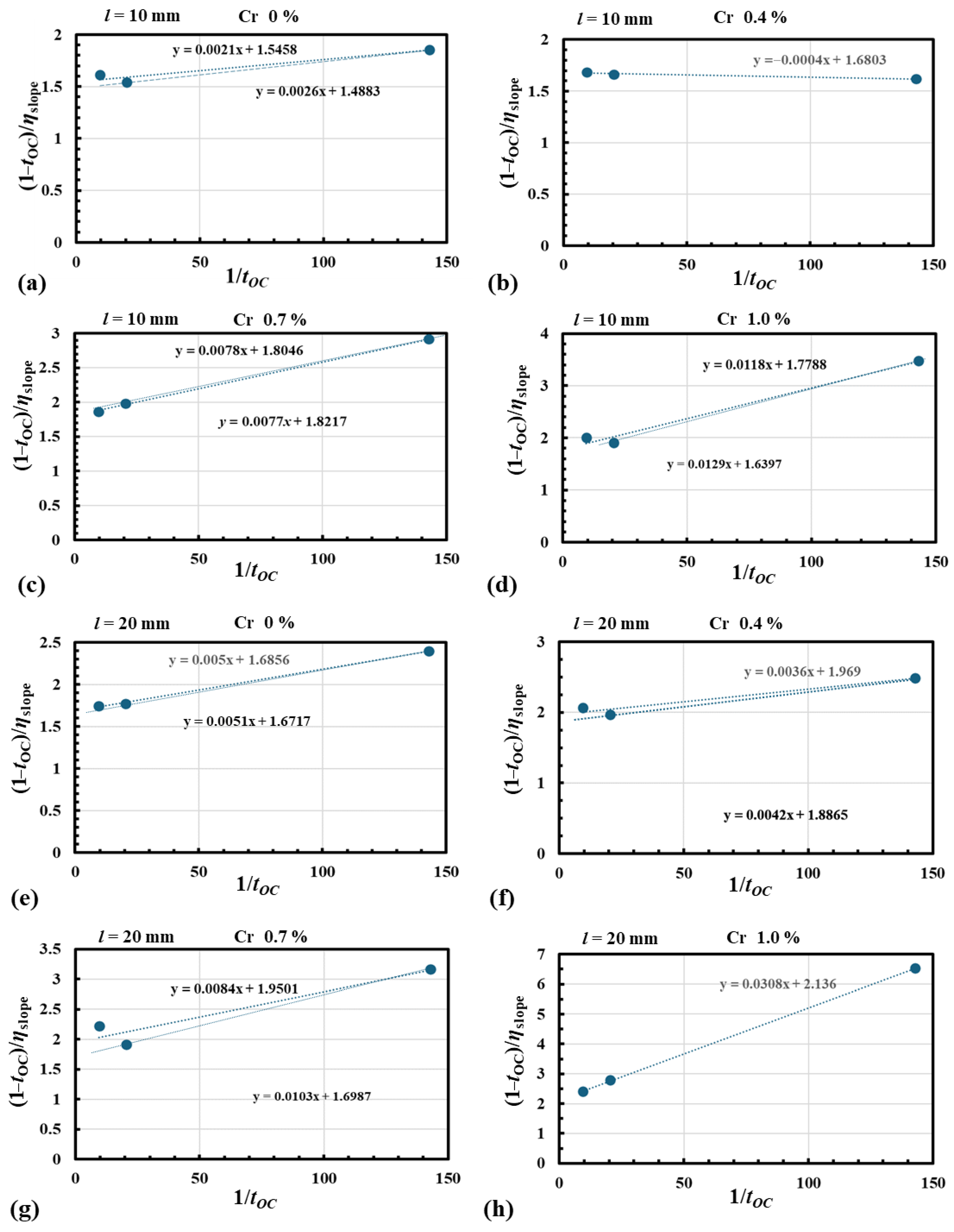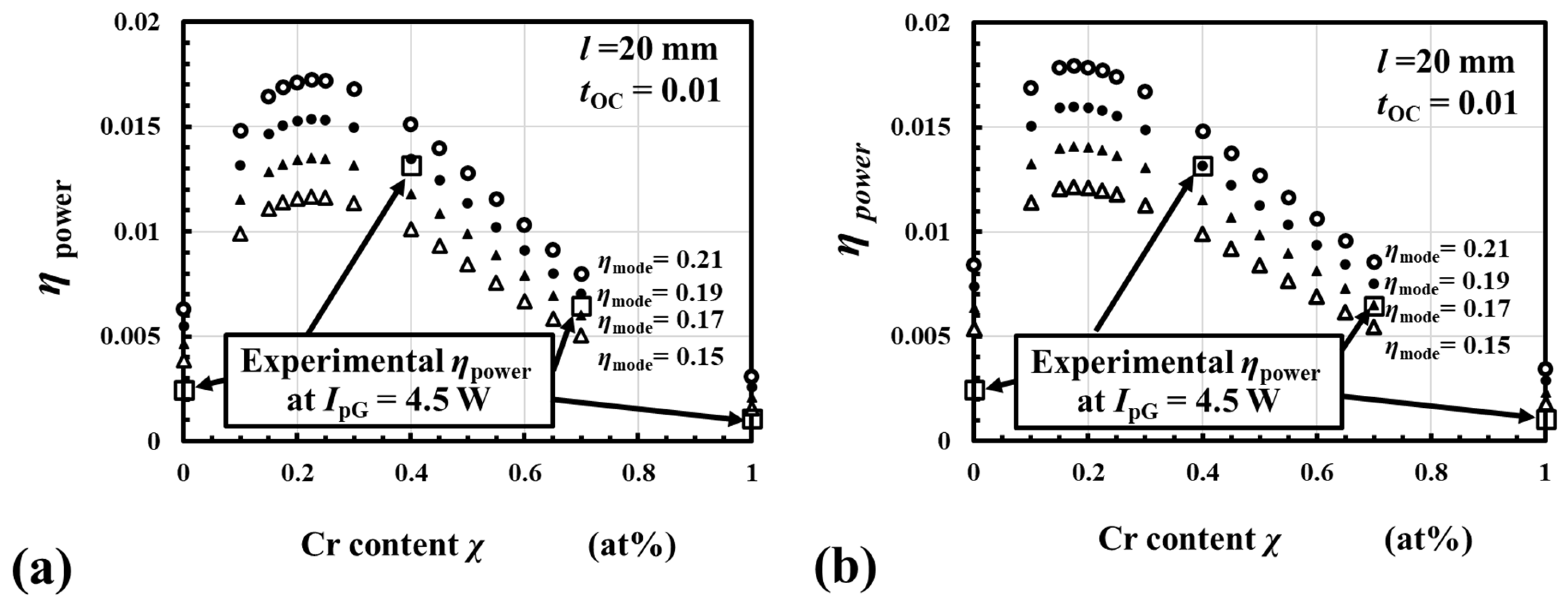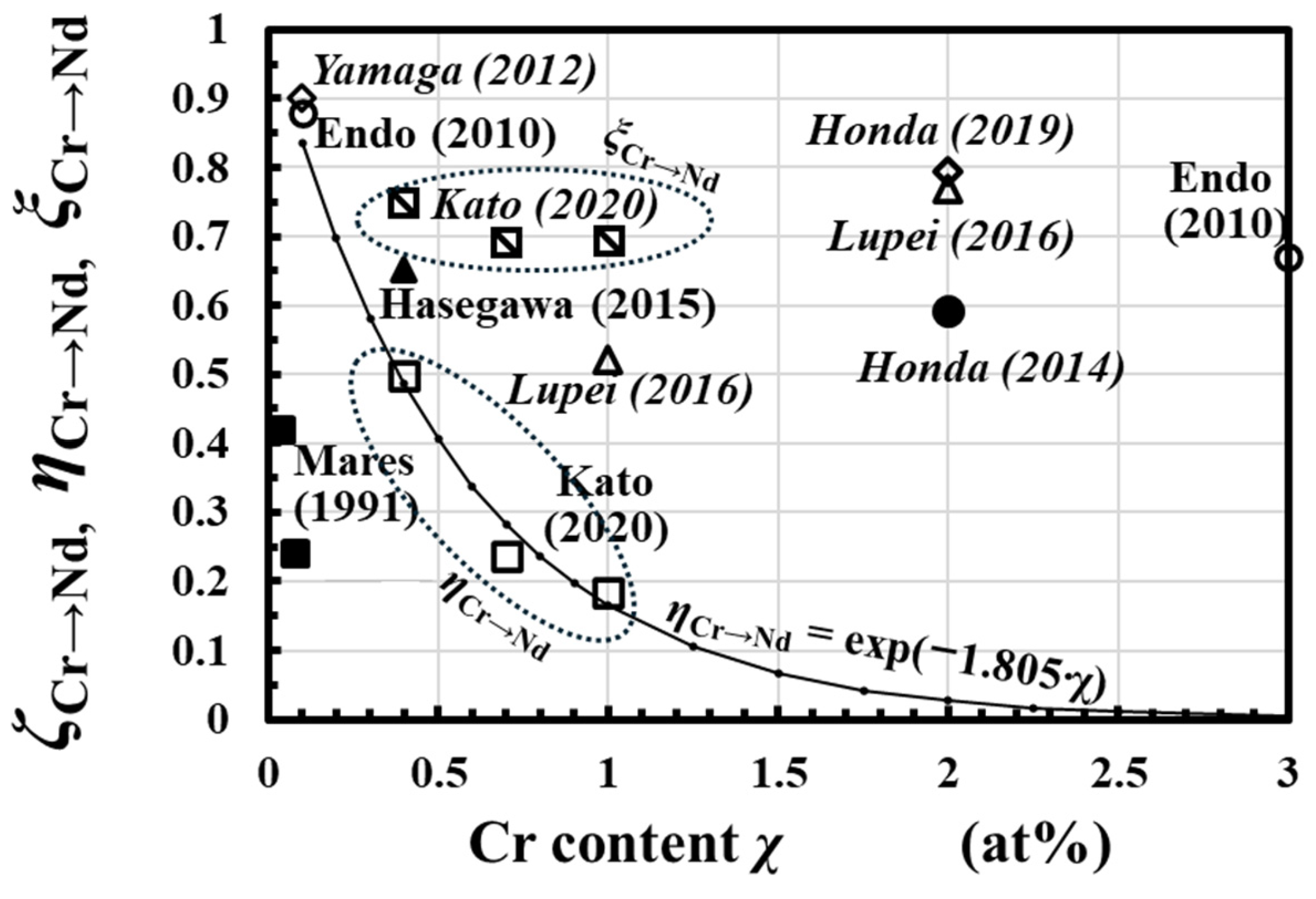 3.2. Estimated ηpowe as a Function of the Cr Content χ