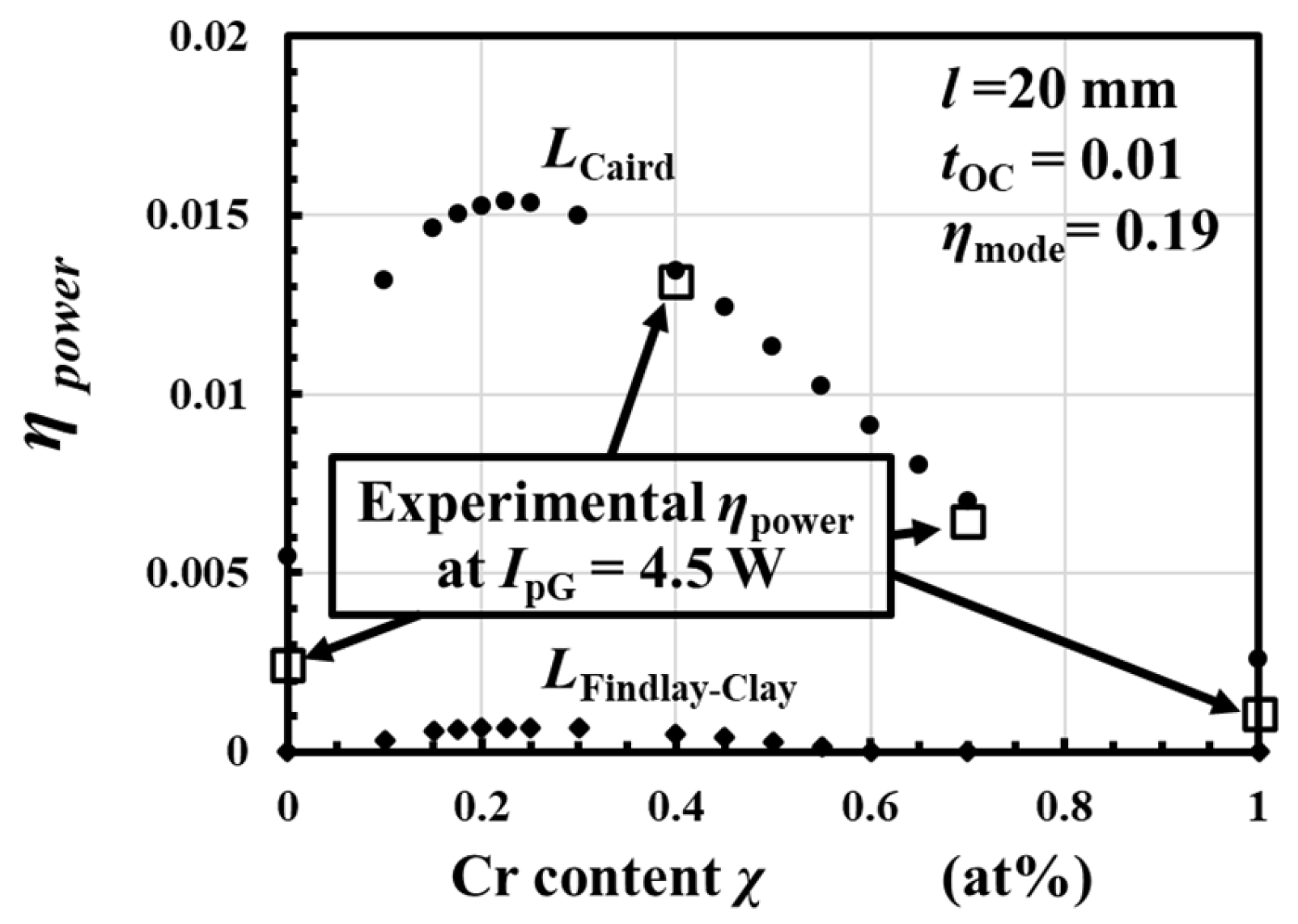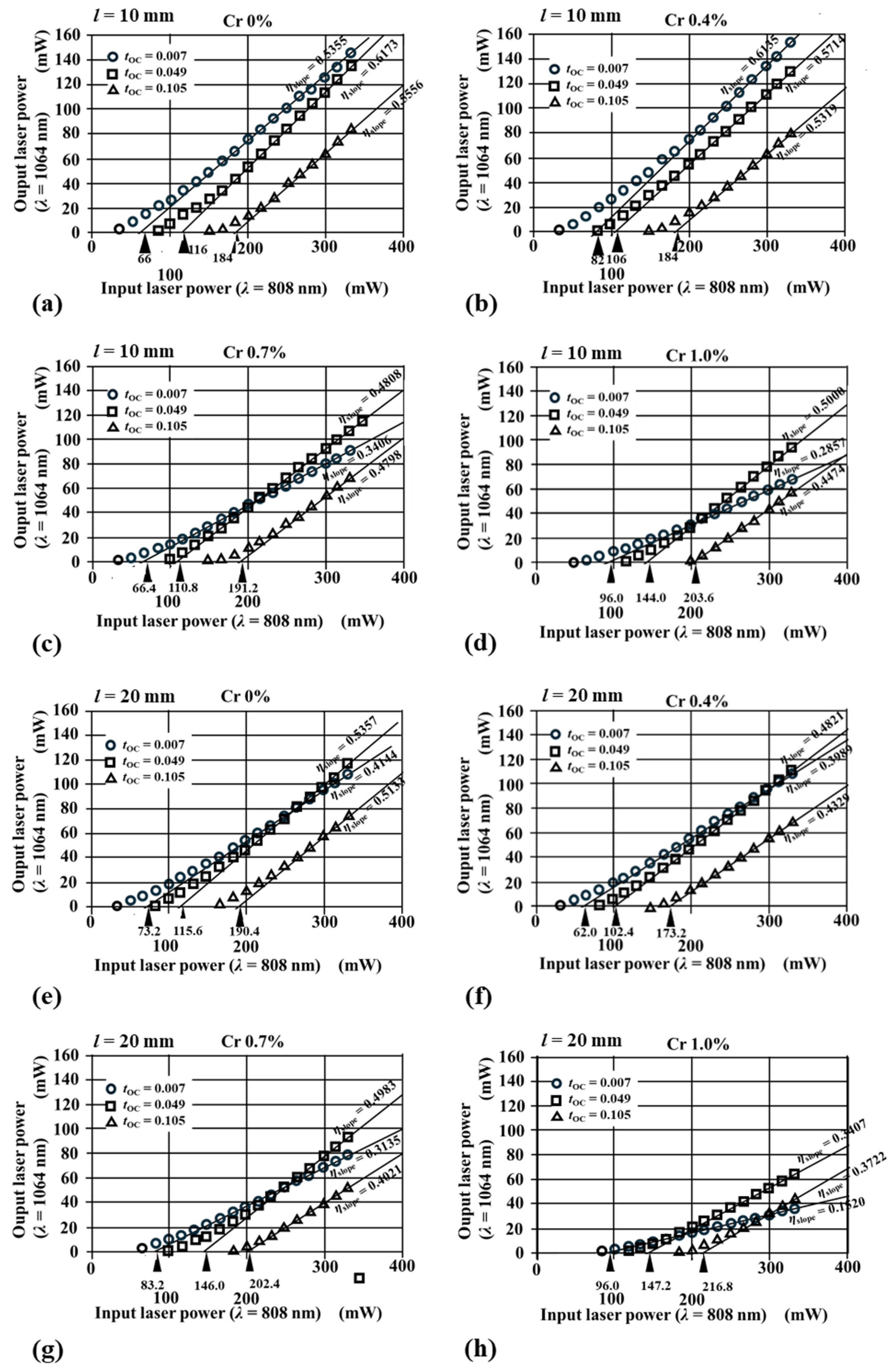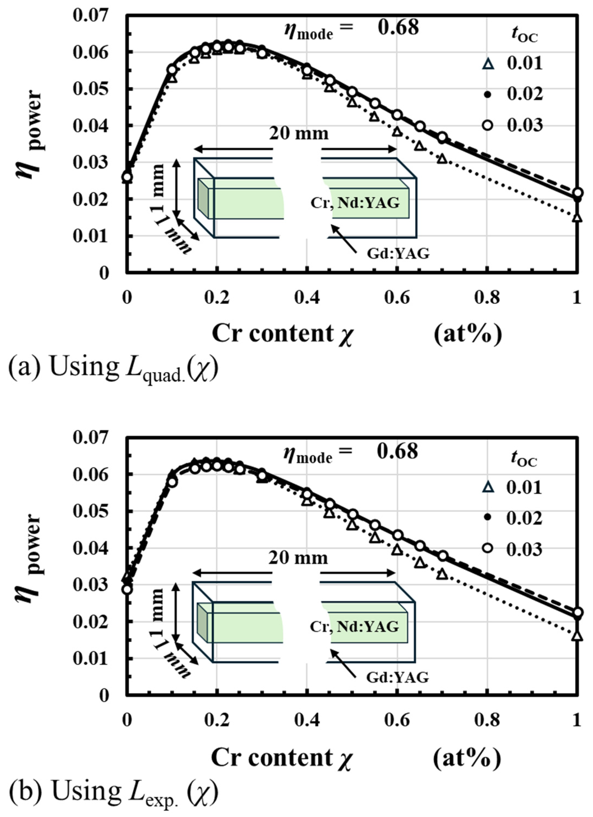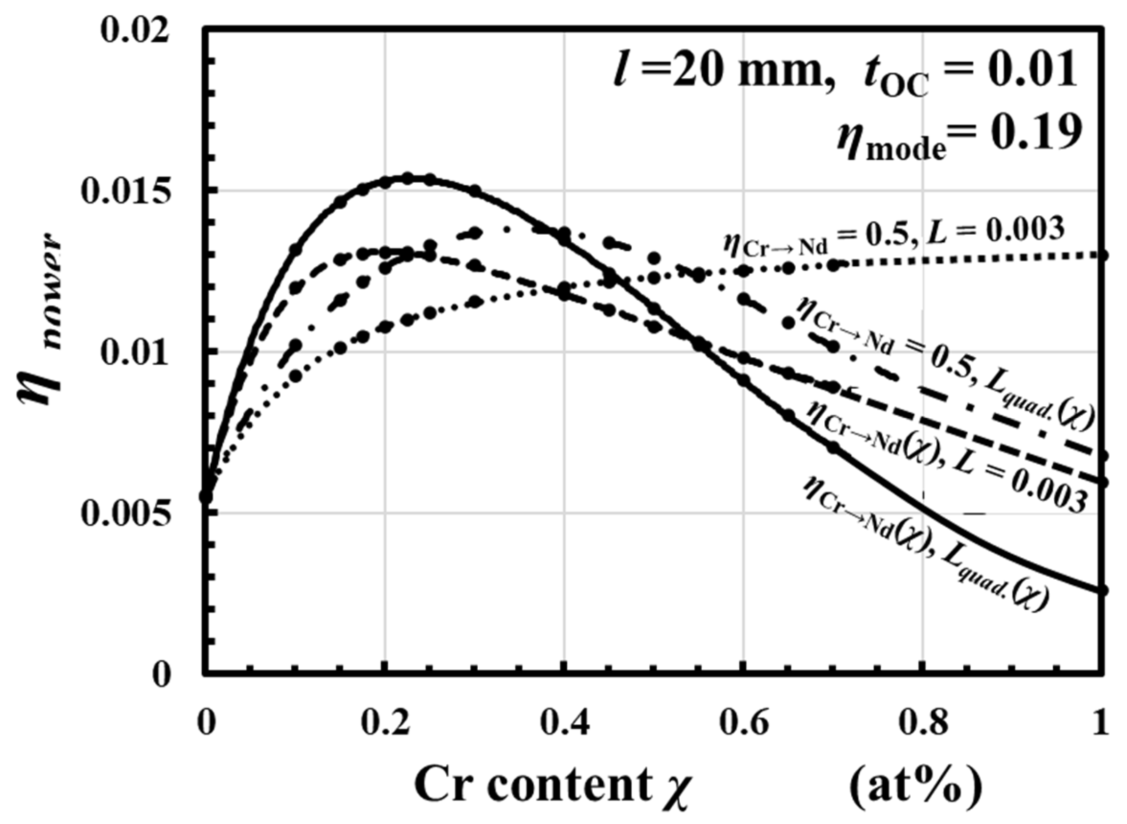 - We derived Cr content χ dependence of the resonator loss L(χ) from experimentally obtained output-laser-power as a function of an 808 nm pumping laser power.