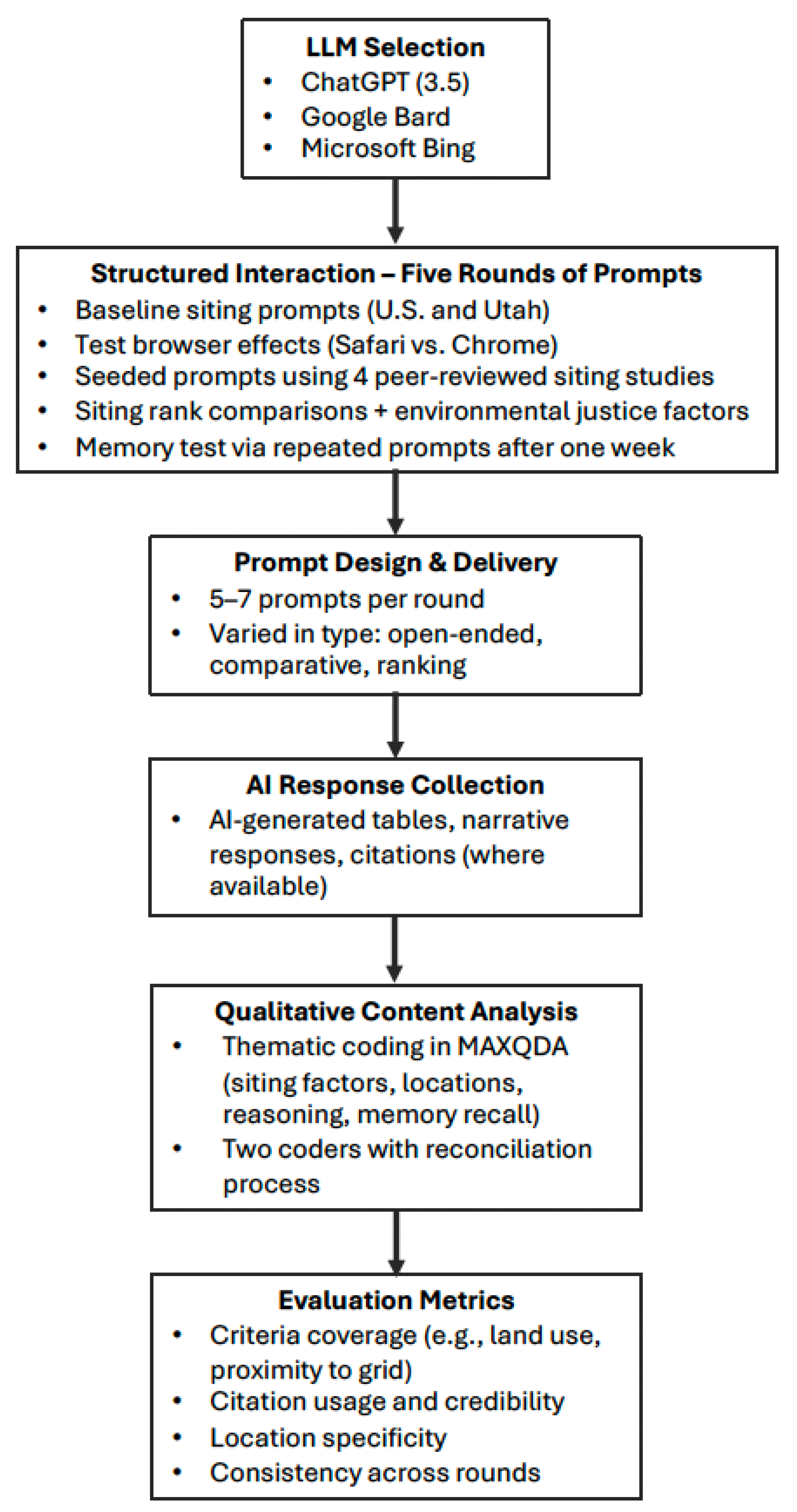 - Coverage of key siting criteria: Did the model mention relevant environmental, technical, and social factors found in the literature?