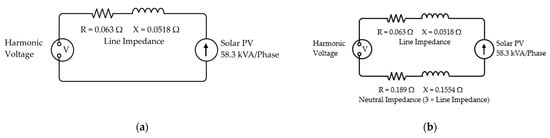 Figure 15. Fundamental frequency (50 Hz) model equivalent circuits: (a) non-triplen harmonic orders; (b) triplen harmonic orders.