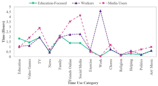 | Time Use Indicator | Education-Focused | Media-Focused | Workers | |||