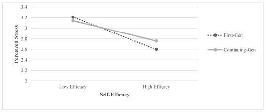 About a third of all college students in the United States are first-generation [67]. The current study provides initial evidence that first-generation status moderated the negative association of self-efficacy and stress, with it being greater for first-generation college students compared to their peers. In addition, self-efficacy was positively related to academic satisfaction for first-generation students, whereas no relation was found for continuing-generation students. As its negative correlation with stress levels and positive correlation with satisfaction and school performance was found in our study, self-efficacy has been shown to be incredibly important for first-generation students [31], for whom having confidence and self-belief may be particularly important if they do not have family to help them navigate the college environment. Clearly, colleges should consider first-generation specific programs to help students build self-efficacy. One way of doing this might be through a mentoring approach, pairing first-year first-generation students with their higher-year first-generation peers to model success, creating an environment that encourages growth over perfection, and fostering goal-setting and self-reflection both within and outside the classroom.
