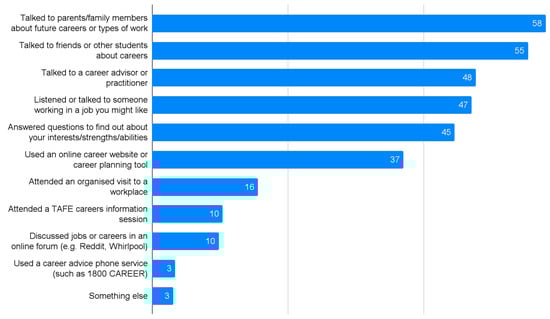 Which of the following activities have you ever done to help make decisions about your future career? (Data source: Survey. n = 1046 [excludes 62 (6%) respondents who selected ‘none of the above’]).