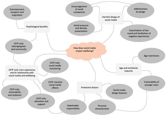 Social media (SM) platforms are prevalent in the lives of many young people, with research showing that 91–97% of 12–17-year-olds use SM platforms in the United Kingdom [1]. The definition of SM has been debated in the literature and a single, widely accepted definition is lacking [2]. In this research, SM is defined as an electronic platform that allows users to opportunistically connect, interact, and communicate with others. Two groups of young people in the stages of adolescence and early adulthood are explored in this study: those who are care-experienced and those who are not. With the high prevalence of SM use among young people today, it is vital to research the impact social media may have on their mental wellbeing. This is particularly important to explore with care-experienced young people as they are more susceptible to developing mental health issues and can be characterised as a vulnerable population [3]. Past research has offered largely mixed findings regarding wellbeing when investigating the impact of SM [4,5,6] and has mostly consisted of research with the general population, thus neglecting underrepresented populations such as care-experienced young people. So, gathering data from an underrepresented population will be beneficial to the academic literature in developing our knowledge of care-experienced young people’s lived experiences while also hoping to empower these young people to make change and contribute to research. Furthermore, recent systematic reviews [7,8] have suggested the need for more qualitative, exploratory studies on social media and wellbeing, which supports this research’s contribution. Therefore, these research gaps justify the rationale for this exploratory research and demonstrate the necessity to see if, and how, the needs of the care-experienced population differ to those non-care-experienced (as the care-experienced group is notably more susceptible to developing mental health issues), and the implications this has for SM design and policy.