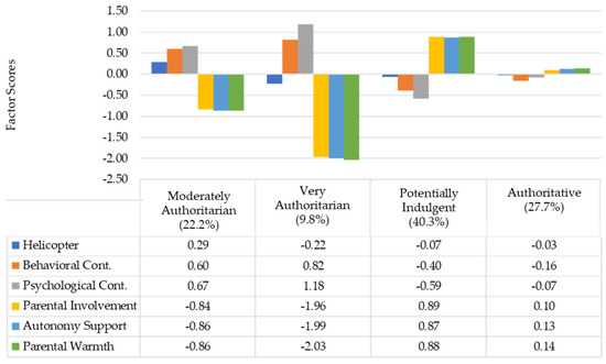 The second largest profile (20.7% of the sample) was characterized by near-average levels of all parenting behaviors (which we conceptualized as reflecting a balanced “authoritative” profile), and likewise replicates past studies which saw similarly average clusters of parenting behaviors in emerging adulthood [36,38,39]. Finally, the emerging adults in our study perceived their parents as falling into two valences of authoritarian profiles. The first (22.2% of the sample), saw moderately high levels of behavioral and psychological control and (to a lesser extent) helicopter parenting, while the second (9.8% of the sample) saw higher levels of psychological and behavioral control, slightly below-average helicopter parenting, and very low levels of involvement, autonomy support, and warmth.