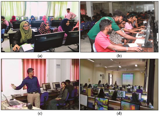 Training workshop for YouthMappers: (a) South Eastern University of Sri Lanka; (b) Eastern University, Sri Lanka; (c) University of Sri Jayewardenepura; (d) Sabaragamuwa University in Sri Lanka.