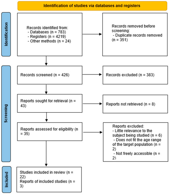 A total of 25 studies met the inclusion criteria. The synthesis focused on mapping and summarizing the available literature rather than conducting a quantitative appraisal. The PRISMA flow diagram (Figure 1) illustrates the search and selection process.