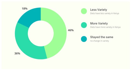 In addition to HDDS, another method for measuring food insecurity is the Household Food Insecurity Access Scale (HFIAS). HFIAS is used to determine the prevalence of food insecurity through a survey that asks participants if they experienced worry about food or a reduction in their eating habits in the last four weeks (Coates et al., 2007). However, instead of applying the HFIAS survey directly, this study focused on changes in participants’ diets since arriving in Kenya to explore how displacement affected participants’ food access and dietary patterns.