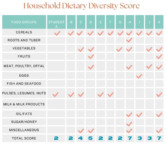 - Tufts University. (2023). Household dietary diversity score (HDDS). In Data4Diets: Building blocks for diet-related food security analysis. Available online: https://inddex.nutrition.tufts.edu/data4diets/indicator/household-dietary-diversity-score-hdds (accessed on 10 July 2025).