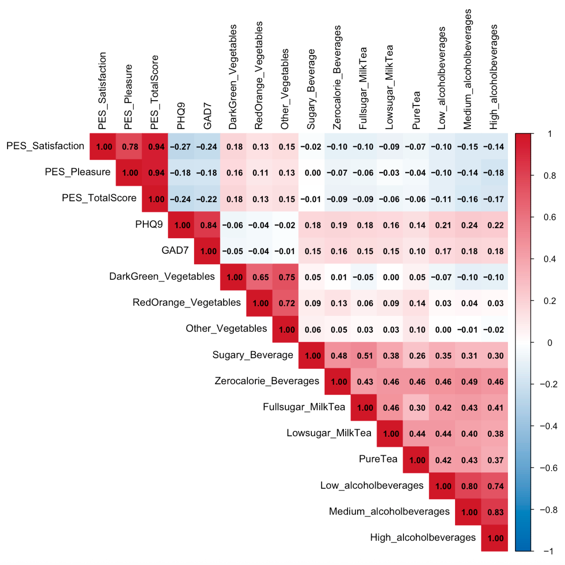 3.5. Correlation Analysis of PES-C Total Score and Dimension Score with PHQ-9, GAD-7 and Dietary Intake Frequency
