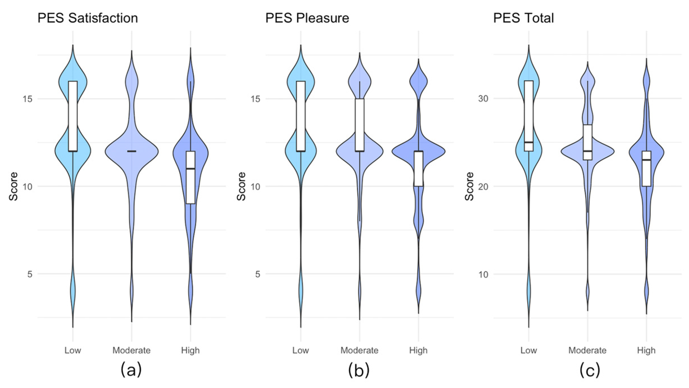 | Content | Sample Size (Percentage) | Total Score | Dietary Satisfaction | Dietary Pleasure |