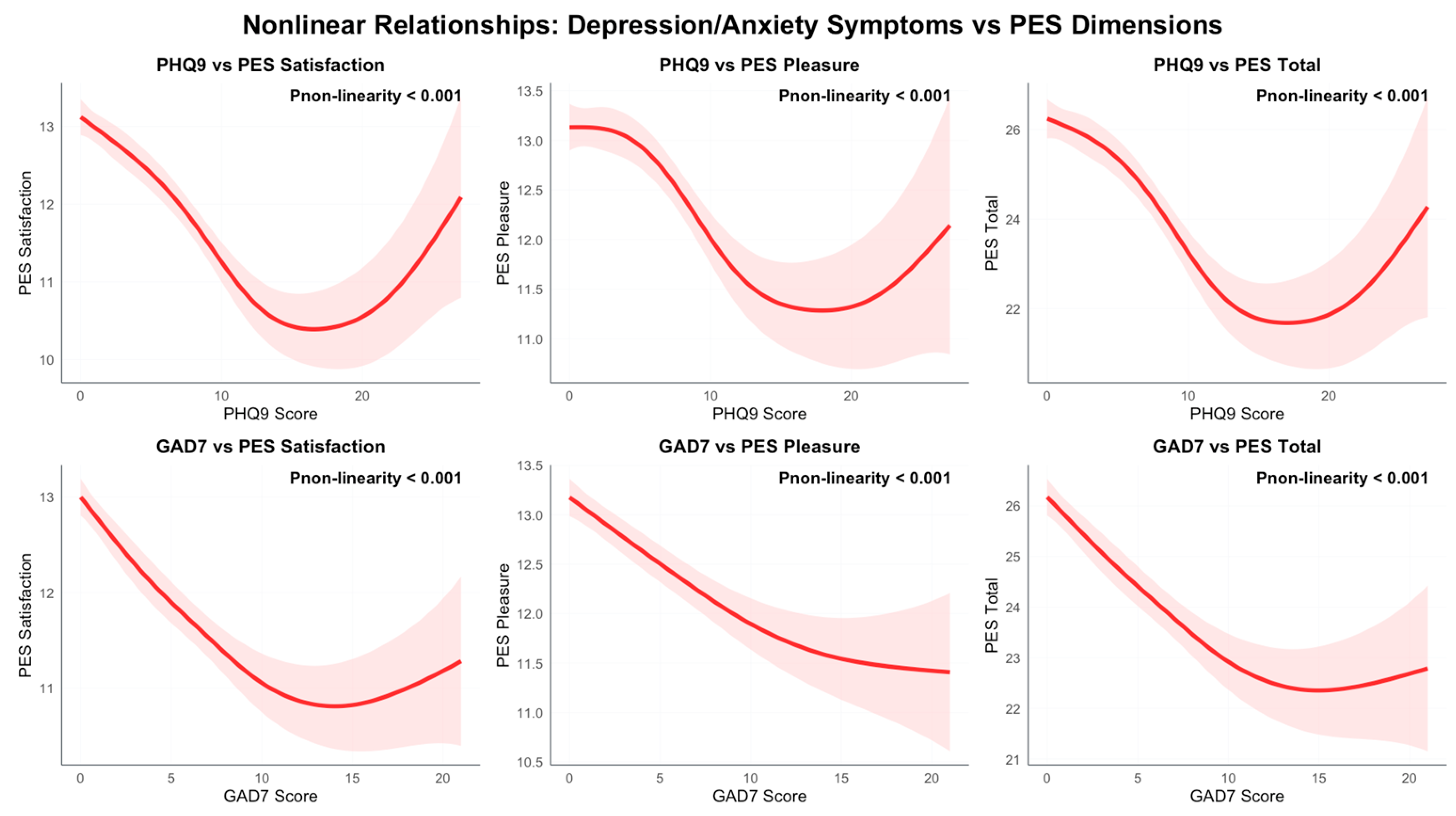 3.6. Distribution Characteristics of PES-C Scores Across Different Levels of Anxiety and Depression