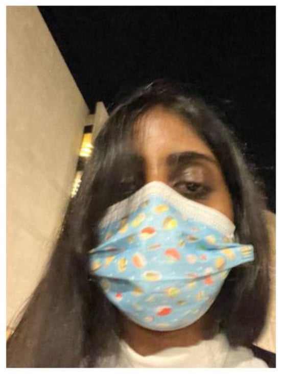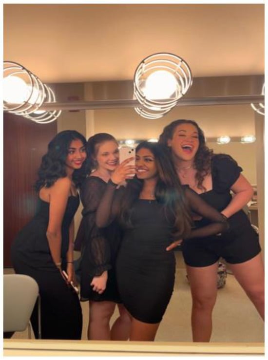 Although other participants did not share photos of their families, several spoke about how ruptures in family connectedness contribute to poorer mental health. Lana shared that she chose a photograph of her smiling (Figure 9) to describe her struggles with body image, in part related to white supremacist beauty standards transmitted to and from her family and her related insecurities: “Whenever I take pictures in general, I always feel conscious of my appearance in a way. My relatives have always been, ‘Oh, you’re fat’ and stuff like that. And so I would get really self-conscious about my appearance”. Lana’s example demonstrates the insidious intergenerational effects of racialization and how these contribute to shame, negative self-perception, and strained relationships, as well as mental health outcomes.