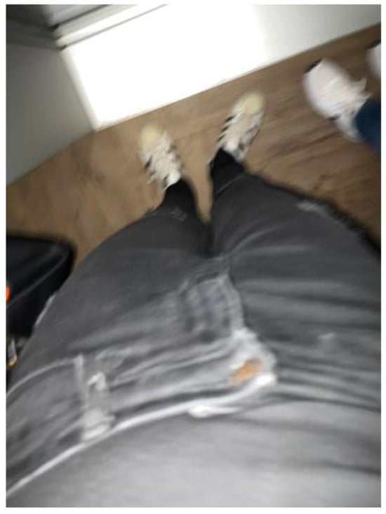 Other participants described social activities with friends, such as sharing a meal (Redacted) and playing poker (Blue), which help them decompress. Similarly, in Figure 7, Spencer shared a photograph of her friend and described that time spent with friends, including speaking about current challenges “is so comforting and encourages me to keep going”. In this way, the connection experienced represents potential protective factors for the sample.