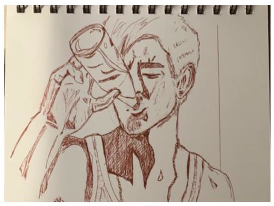 Participants also seemed to internalize the model minority stereotype (MMS) in ways that made them feel as if they should keep their mental health struggles to themselves. Alphonse explained, “I hesitate a lot to describe mental health struggles because I feel like I don’t want to victimize myself that way”. To counter this stigma of seeking help, participants suggested that AsA students should check in with themselves and critically reflect on their mental health because many ignore or are not aware of their maladaptive coping strategies. Indeed, Finn cautioned about how “easy [it is] to fall back on certain habits or substances in times of stress” while describing a sketch of a “pained” man in Figure 14.