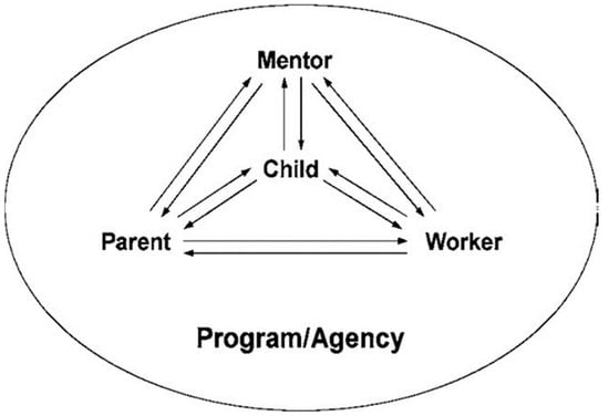 The success of the child’s mentoring relationship depends on the quality of these secondary relationships among the adults, which should thus be included in any study of the primary mentoring relationship. Indeed, these important secondary relationships have been demonstrated to influence the effectiveness and quality of the primary relationship and potentially impact the outcomes of said relationship [9].