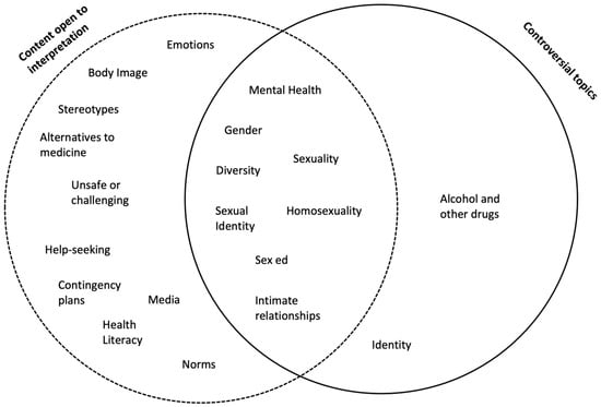 Comparison of controversial topics and curriculum content that is open for interpretation ().