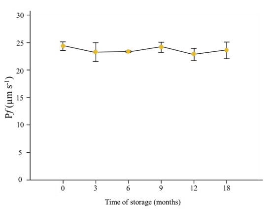 The functionality and stability of the membrane vesicles were determined through osmotic water permeability value (Pf) over time. An initial value about 25 µm s−1 was kept for 18 months when vesicles were stabilized with polyalcohol (Figure 2).