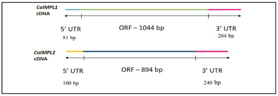 Diagrammatic representation of CaIMPL1 and CaIMPL2 cDNA with UTR.