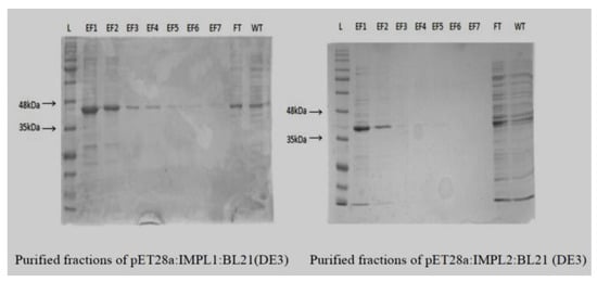 Purified fractions of CaIMPL1 and CaIMPL2 proteins on 12% SDS PAGE.
