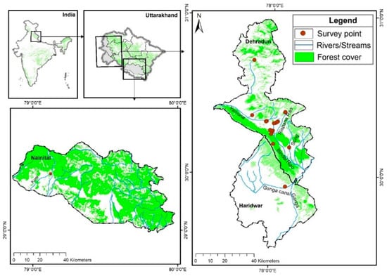 Household Survey and Rapid appraisals approach was adopted as “survey and monitoring tools” to identify more geographical locations in Uttarakhand, where pig rearers were localized [3]. In total, 28 households (HH) (25 in Dehradun, 2 in Haridwar, and 1 in Nainital), were interviewed by preparing a semi-structured questionnaire from March 2019–December 2019 in the urban districts of Uttarakhand. The geographical position of each participating family was recorded using the Android based software, Google Maps.