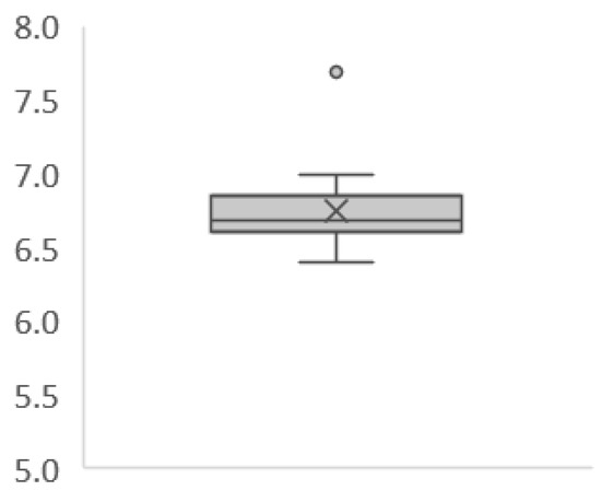 Boxplot of pH of soil field of Vitis vinifera cv. Fernão Pires (n = 20).