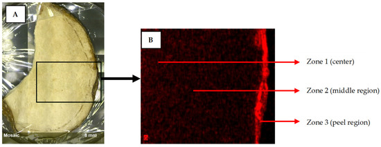 Macroscopic visualization of the dry tuber (A) and tuber sections (from center to epidermis, 1–3) from the equatorial region (B) of Solanum tuberosum L., cv. Agria, 3 months after harvest (under storage conditions).