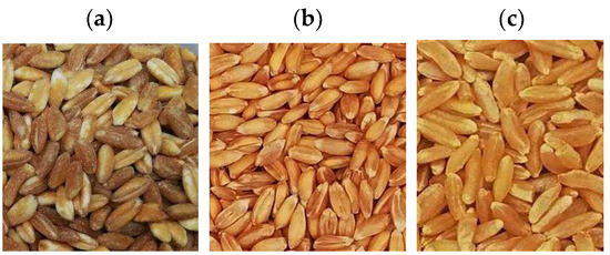 Organic ancestral wheats. (a) Emmer; (b) Spelt; (c) Khorasan.