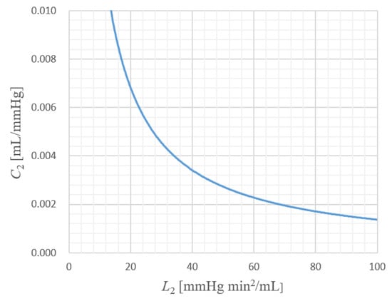 According to Figure 4 of Ref. [1], values of range from 30 to 100 [mmHg min2/mL]. The condition tells us the value of at the resonance ranges from 0.002 to 0.004 [mL/mmHg]. Since the standard value of (=standard size of mother aneurysm) is taken equal to 0.10 [mL/mmHg] in Ref. [1], in terms of adjusting the possible increase of local pressure inside aneurysms, daughter aneurysms with their volumes 2% or 3% of mother aneurysm, are exposed to the resonance. The size of the daughter aneurysm is not so large in this situation, and therefore the rupture takes place unexpectedly.