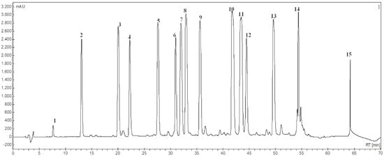 The LC-MS chromatogram (Figure 1) of STL fraction identified prominent peaks that matched the fragmentation patterns, retention time, and/or UV spectra of some of the known STLs hypothesized in a previous study, such as diversifolin, diversifolin methylether, tagitinin A, tagitinin C–F, woodhousin, and orizatin [].