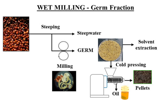 The wet milling process of quinoa allows the separation of the germ fraction, which leads to the enrichment of fractions rich in protein and food-grade oil, as is the case with cereals such as corn.