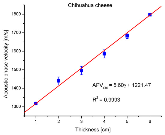 Acoustic phase velocity dependent on the thickness of the Chihuahua-type cheese.