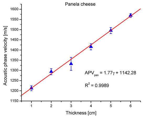 Acoustic phase velocity dependent on the thickness of the panela-type cheese.