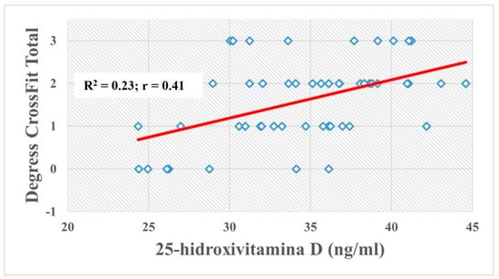 Correlation of sports level degree in CrossFit® Total and 25-hydroxy vitamin D (25(OH)D) plasm levels.