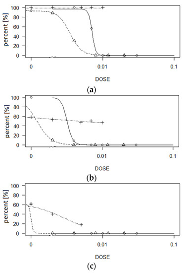 - Ritz, C.; Streibig, J.C. Bioassay analysis using R. J. Stat. Softw. 2005, 12, 1–22. [Google Scholar] [CrossRef] [Green Version]