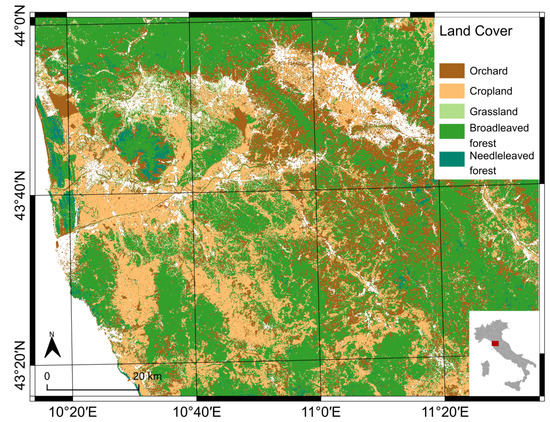 - Agrillo, E.; Filipponi, F.; Pezzarossa, A.; Casella, L.; Smiraglia, D.; Orasi, A.; Attorre, F.; Taramelli, A. Earth Observation and Biodiversity Big Data for Forest Habitat Types Classification and Mapping. Remote Sens. 2021, 13, 1231. [Google Scholar] [CrossRef]