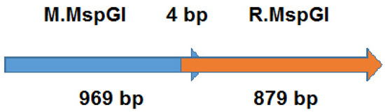 As shown in Figure 1, the end of the MTase gene overlaps with four nucleotides at the beginning of the REase gene.