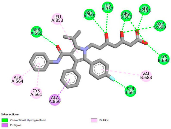 Two-dimensional interactions of atorvastatin with HMGR amino acid residues.