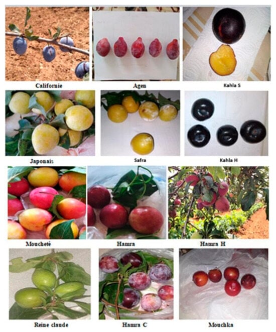 - Selka, S.; Ilias, F.; Mahdad, M.Y.; Sekkal, M.C.; Gaouar, S.B.S. Morphometric characterization of plum (Prunus domestica L.) in the far west of Algeria. Genet. Biodivers. J. 2021, 5, 207–213. [Google Scholar] [CrossRef]